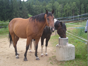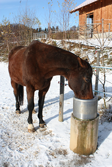 Die zwei Wasserstellen sind weit abseits der Fressbereiche gelegen, wodurch die Pferde zusätzlich zum Bewegen animiert werden.