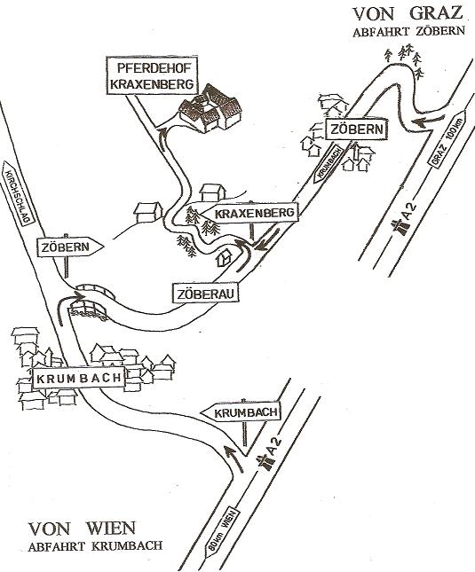Auf der Bundesstrasse 55 durch Krumbach fahren und anschließend rechts Richtung Aspang-Zöbern abzweigen.