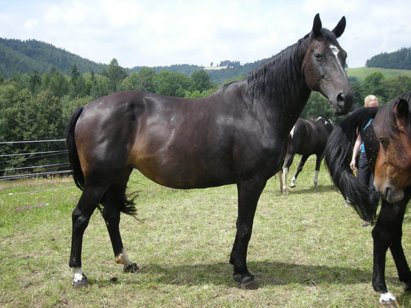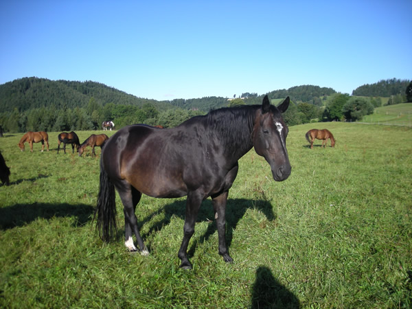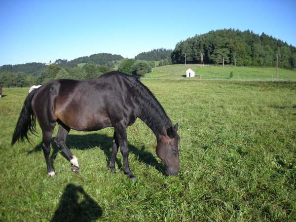 Bereits zu Beginn ihrer Ausbildung zeigte sie leider erste Anzeichen von Lahmheit: Arthrosen und Hufrollenentzündung.So ging sie quasi von der Aufzucht ins Gnadenbrot.