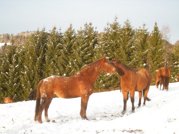 Er war jeden Tag beim Spielen mit dabei und auch nicht abgeneigt mitzumachen, wenn die „Übermütigen“ ihre Ehrenrunden liefen. Da er allen Pferden ein guter Freund war und sich in Geduld übte, leistete er vielen Pferden bei ihrer Genesung Gesellschaft. Bis zum Schluss war er ein wertvolles Mitglied in der Gruppe. Leider waren seine Schmerzen irgendwann trotz Medikamente nicht mehr auf ein erträgliches Maß zu reduzieren und wir mussten ihn erlösen.